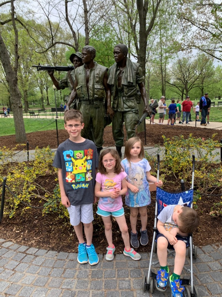 When visiting the Vietnam Memorial I told the kids (all but Austin) a little about the history of Vietnam and that their Grandpa (my dad) fought in this War.