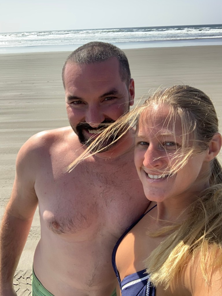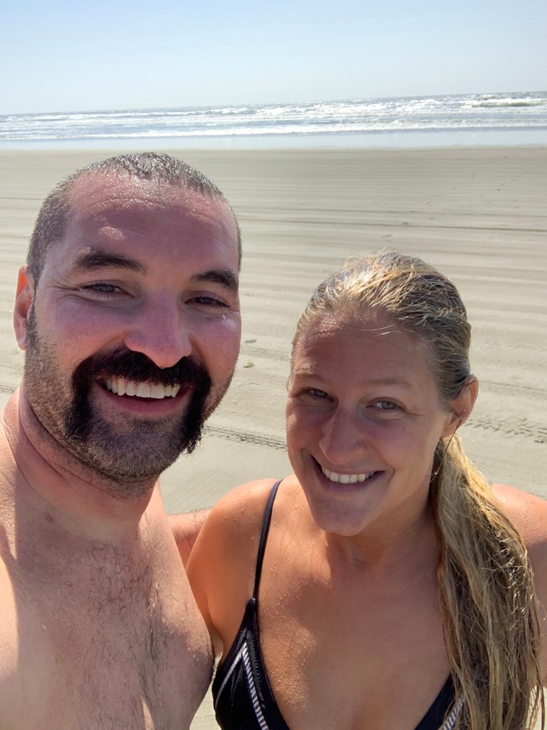 Next we drove to Gearhart and started driving on the beach. (This is when the upgrade to the SUV really came in handy). We parked and decided that we needed to submerge ourselves in the Pacific Ocean. The temperature was 56 degrees. To us it was cold but to all of the Oregon beachgoers it was a perfect and beautiful beach day. We both fully submerged ourselves and then ran back to the car to take a picture of proof that we did it.