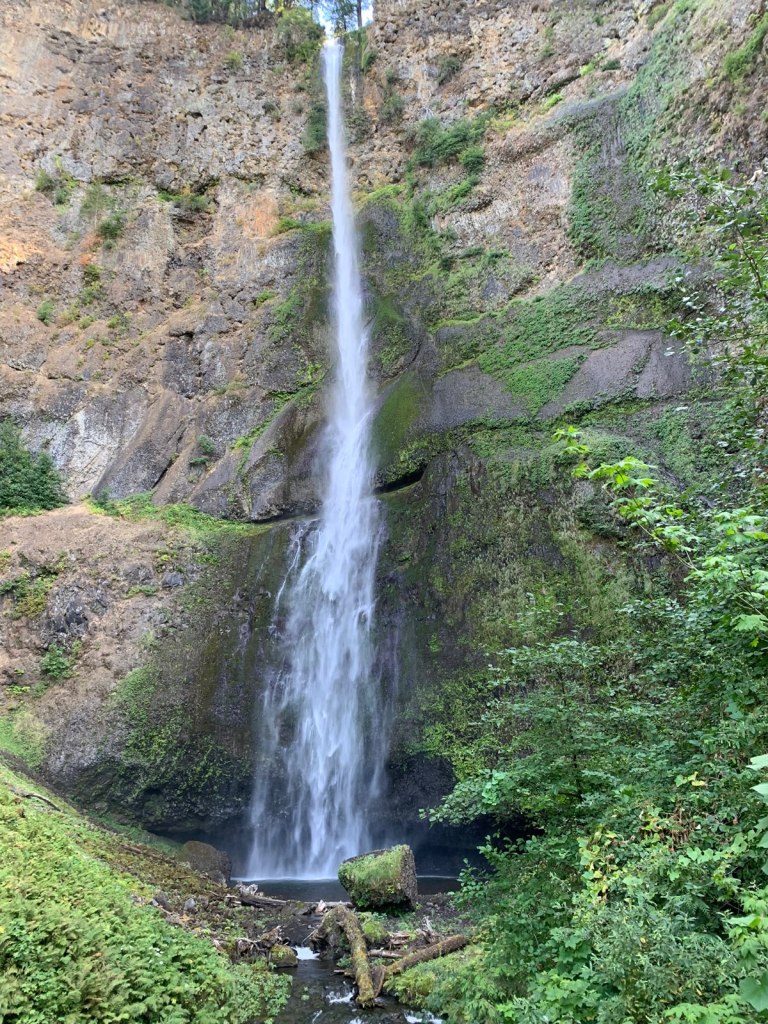 We made it to Multnomah Falls. If you plan to come here, plan in advance extra time to find parking. The parking lots fill up fast. We got very lucky and someone pulled out as we were pulling in. Visitors can view the falls from the ground level or take a small hike to the footbridge that crosses over the lower falls. The trail continues past the foot bridge and viewing platform to the top of the falls. We started hiking the trail and came across others that appeared to be avid hikes like ourselves and we asked them if it was worth it to hike all the way to the top of the falls. They told us, from the top there is not really a view and it is almost impossible to see the falls from the top. They did provide us with a few other places to check out in the area and since we had limited time we took their advise and headed back to the car.