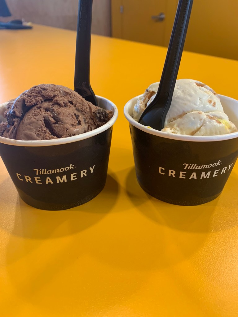 After we finished our breakfast we took a self guided tour around them creamery. There are large glass windows that allow visitors to view the manufacturing process. We watched for a little while. Plenty of cheese samples were available (*disclaimer, we went in 2019 before the pandemic, I do not know if the cheese samples are available). Of course before we left we HAD to try their ice cream!! Yes it was 9:15 in the morning……. If you are in Oregon, especially the west coast, Tillamook Creamery should be at the top of your list of things to do! A little over a year ago, our local grocery stores started selling Tillamook cheese and ice cream and that is our go to every time.