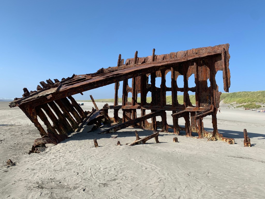 Once we dried off and turned the heat on in the car, we continued driving along the beach until we got to were we had to exit. At the exit is the remains of the Wreck of the Peter Iredale. The Peter Iredale was a sailing vessel that ran ashore towards the end of 1906 while enroute to the Columbia River.