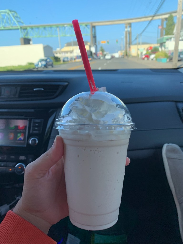 One of the things I loved about the time I spent in Washington State when I was in High School was the drive thru coffee stands. I am not a coffee drinker. Weird I know but it just isn’t my thing and thankfully for me it isn’t Blake’s thing either. But I do love these coffee stands for their flavored drinks. I remember getting them all the time when I would visit my sister. I would either get a raspberry or root beer drink (more of a cream style/milkshake drink) but none the less, amazing! I tried so many local coffee shops around my area and nobody makes these and they look at me as if I am weird when I try to request these drinks. We stopped at Kick Ass Koffee and both had the root beer drinks. Blake was thoroughly impressed.