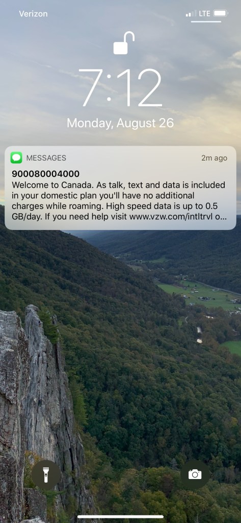 The other disappointment about this area is the trail we planned on hiking was closed due to the removal of mountain goats. Yes mountain goats! We ended up hiking up the Big Meadow Nature Trail to the Sunrise Viewpoint Nature Trail. The entire hike was about 1.5 miles. Beautiful views all around. We came across the Hurricane Ridge ski area. Their ski area is a lot different from what we see at home. At first we thought it was abandoned until later on we googled the area and found out that it is in fact an active ski resort. We reached the Sunrise viewpoint and all of a sudden our phones buzzed and we received a message saying “Welcome to Canada”. We finished our hike and headed back to the car.