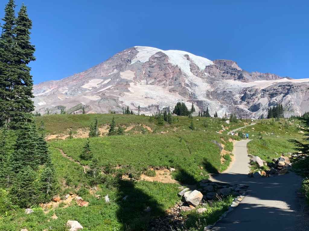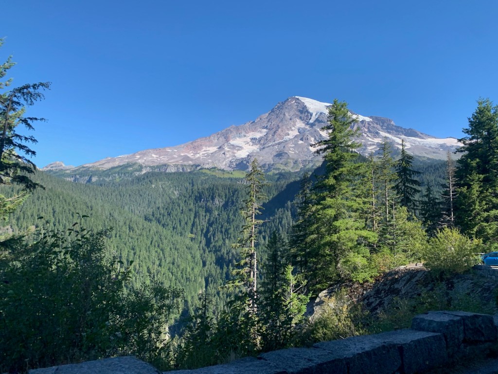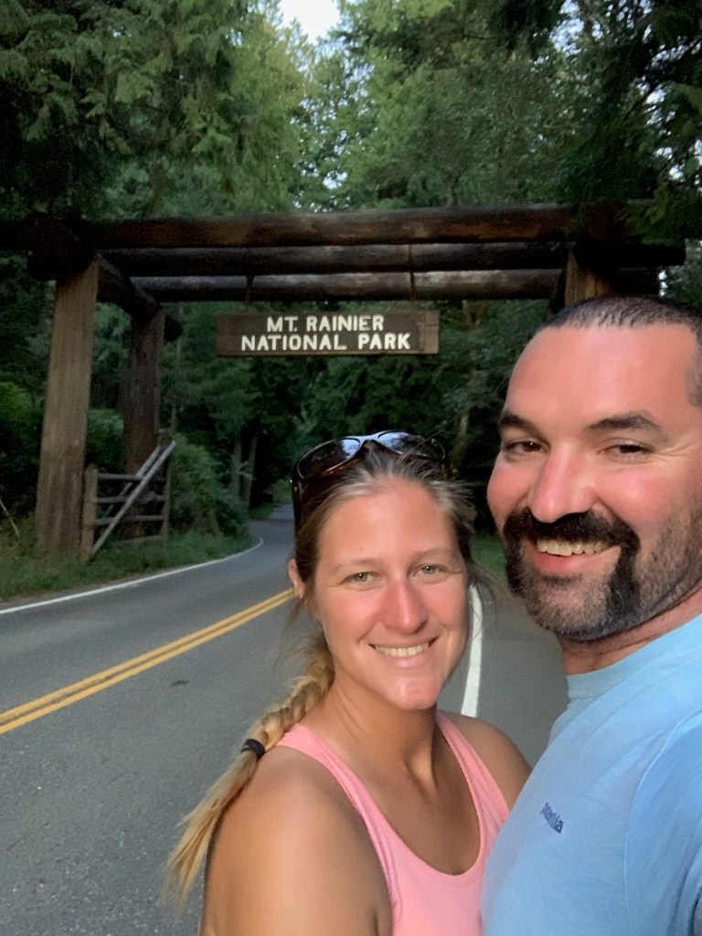 Once we got off the ferry we took the 1.5 hour drive to Mount Rainier National Park. I feel asleep on the car ride over. Blake claims to have seen an Elk while I was sleeping. We pull up to our campsite around 1:30 Am. Finished setting up around 2:15 and went to bed. After about 6 hours of sleep we got up, packed up our tent, had some breakfast, got ready for our hike and chatted with our neighbor for a few. Off we went…..