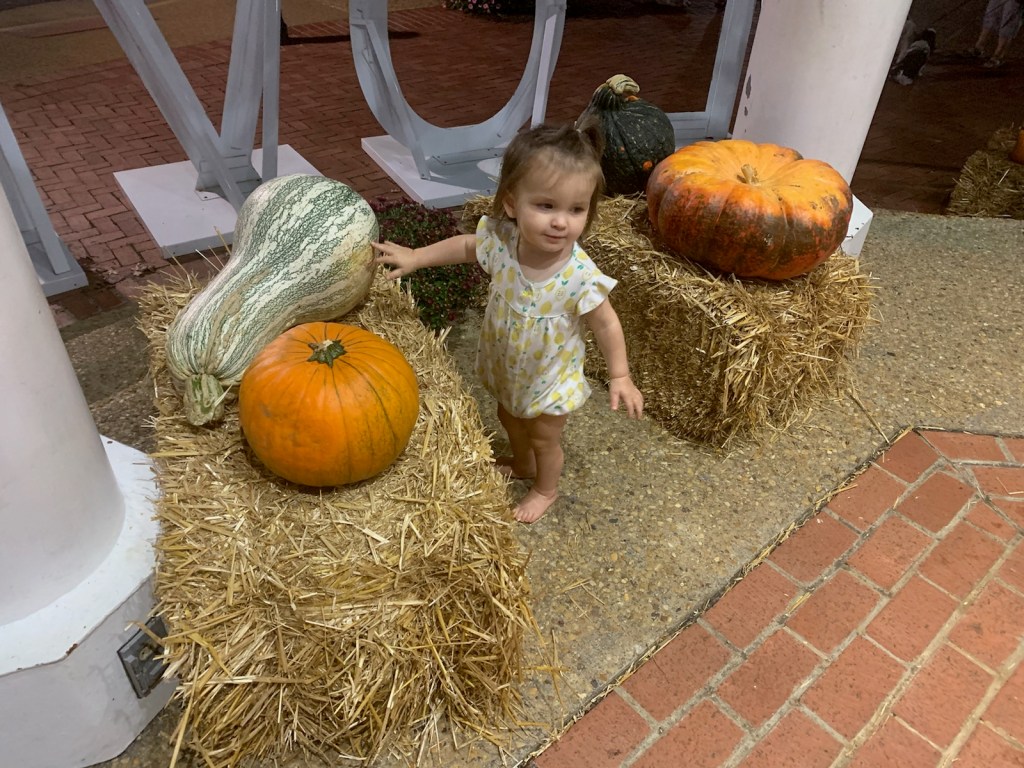 The entire Main Street in Front Royal is a quaint historic downtown. We look Taylor to the pumpkin displays in the gazebo that are set up for photos. She loved all of the pumpkins.