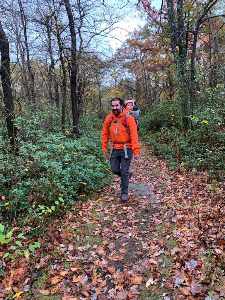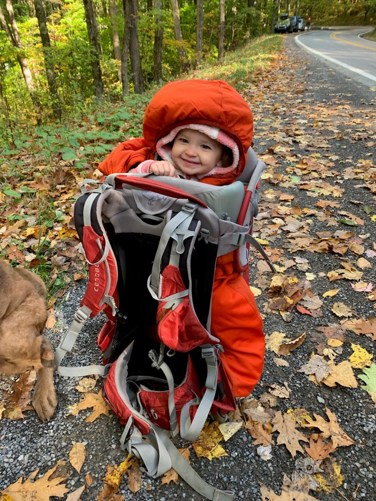 Before hiking back to the car we made sure to take Taylor out of her backpack carrier for her to walk in PA. This is her first time being in PA.