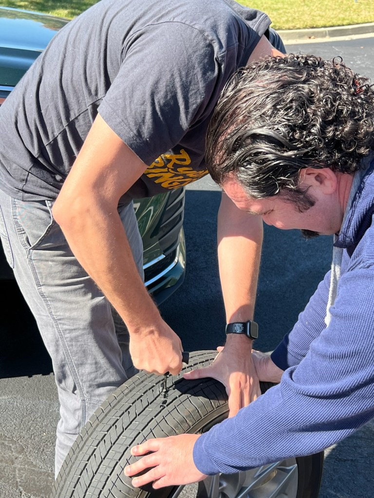 Blake and Ty got the tire back on the van and hopefully we were good to go. I did find a GoodYear down the street and we took the car by to see if they could look at it. They said that since the plug was in it, they couldn’t do anything and that if it is holding pressure, we should be good to go.