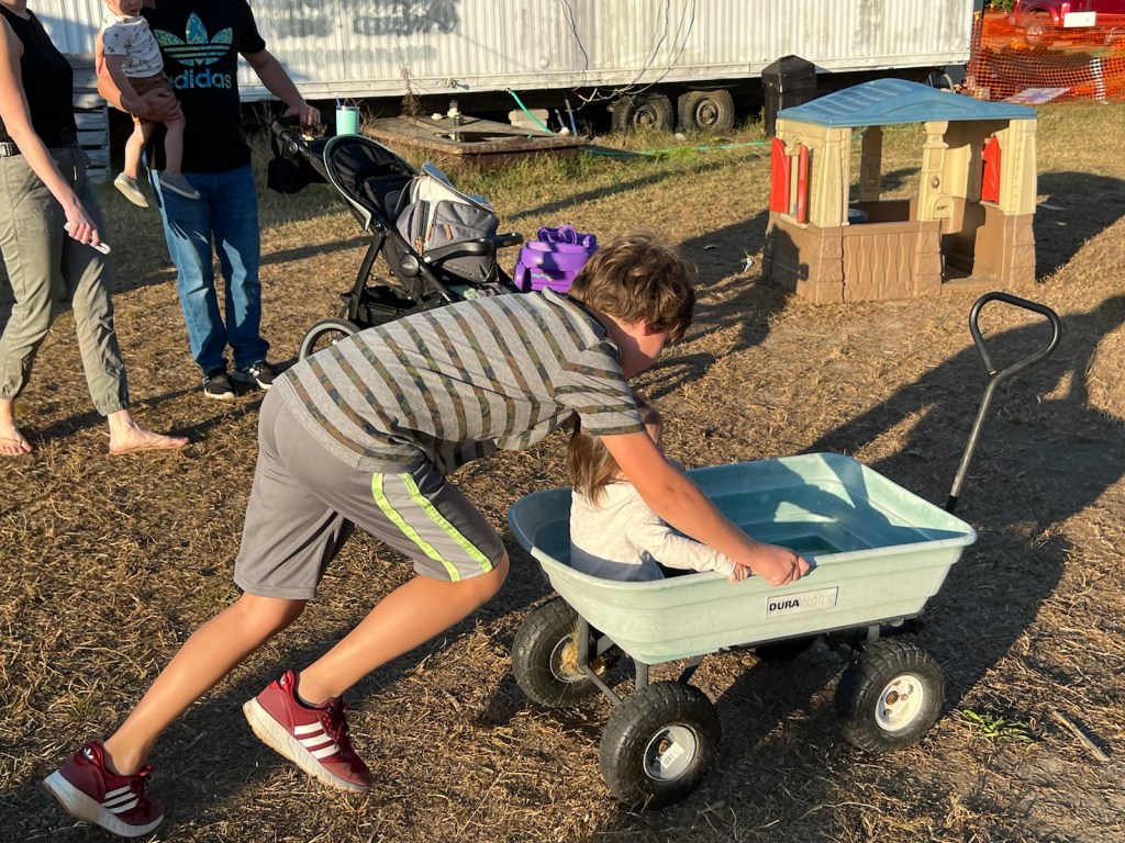 At one point Ethan put Taylor in a wagon and played with her for a bit. The whole time Taylor screamed “Go Go Go”