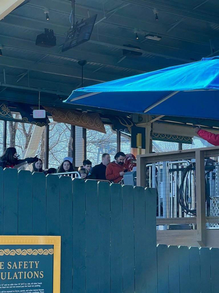 Once we leave the Forest of Fun, we head to Festa Italia – the location of Pantheon. We get to Pantheon and there is a large group of people waiting at the entrance. Come to find out that the ride hasn’t opened to guest for the day due to the weather. They outside temperature has to reach a certain degree in order for most of the coasters to run.