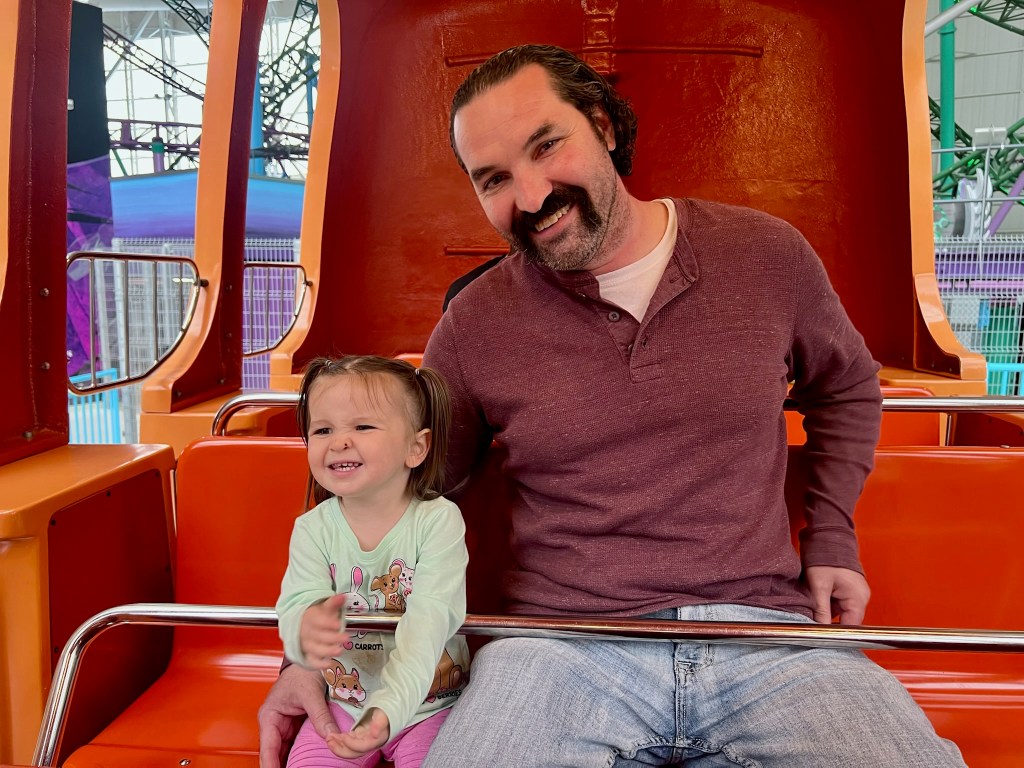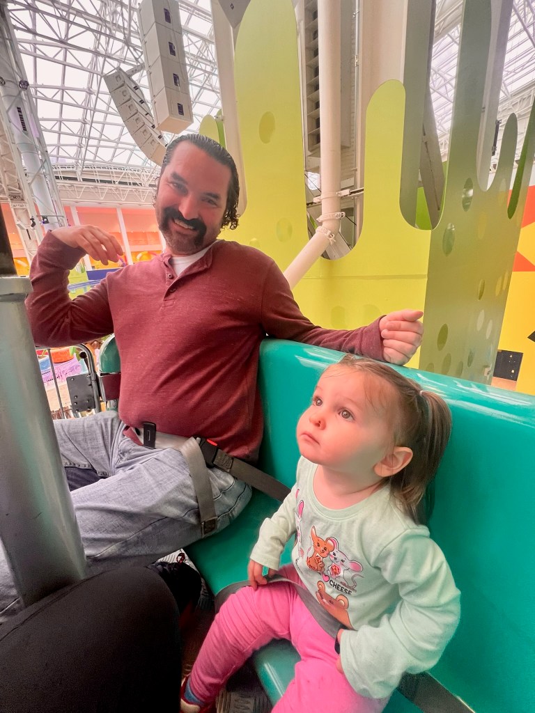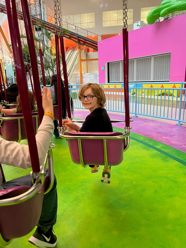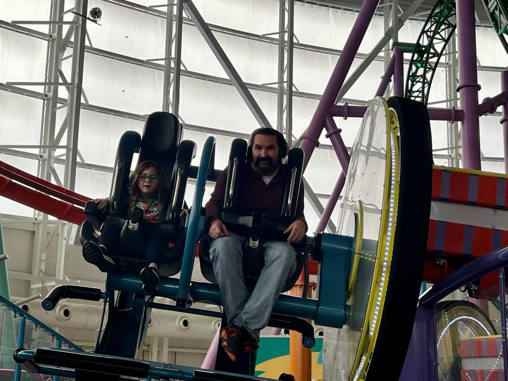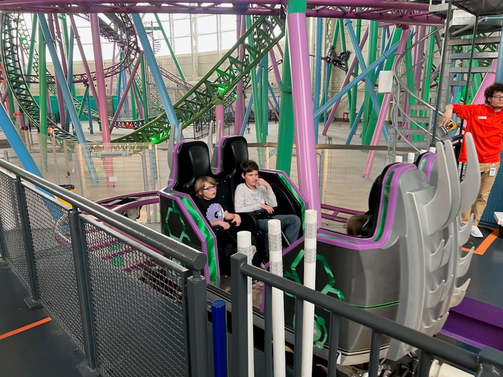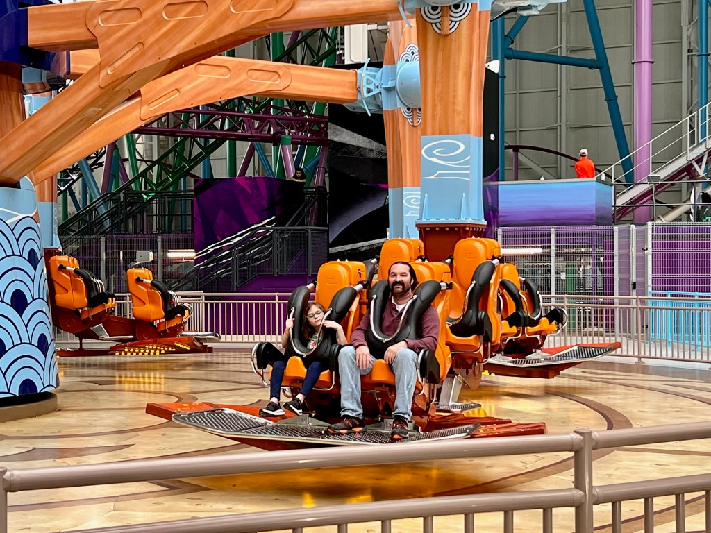 We got on The Shredder, 1 of the 4 coasters but only 1 of the 2 that were currently open. The Shredder is the world’s tallest and longest free-spinning coaster. We eventually learned that if you sit on one side only, you spin almost the entire ride.