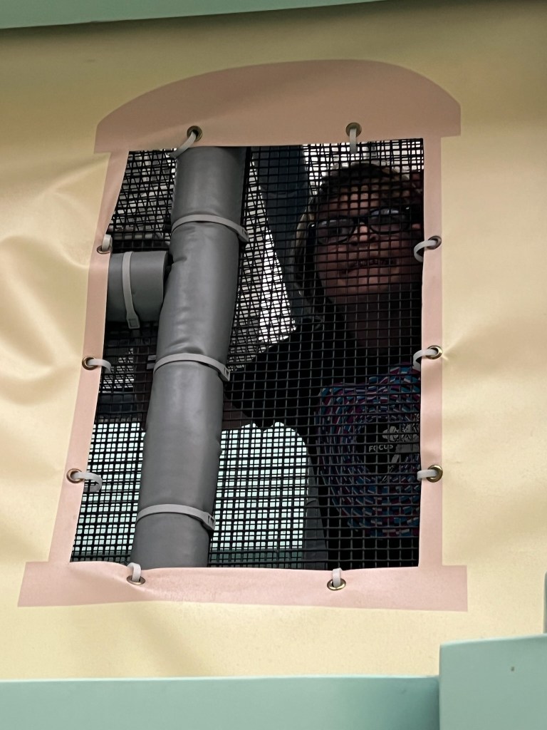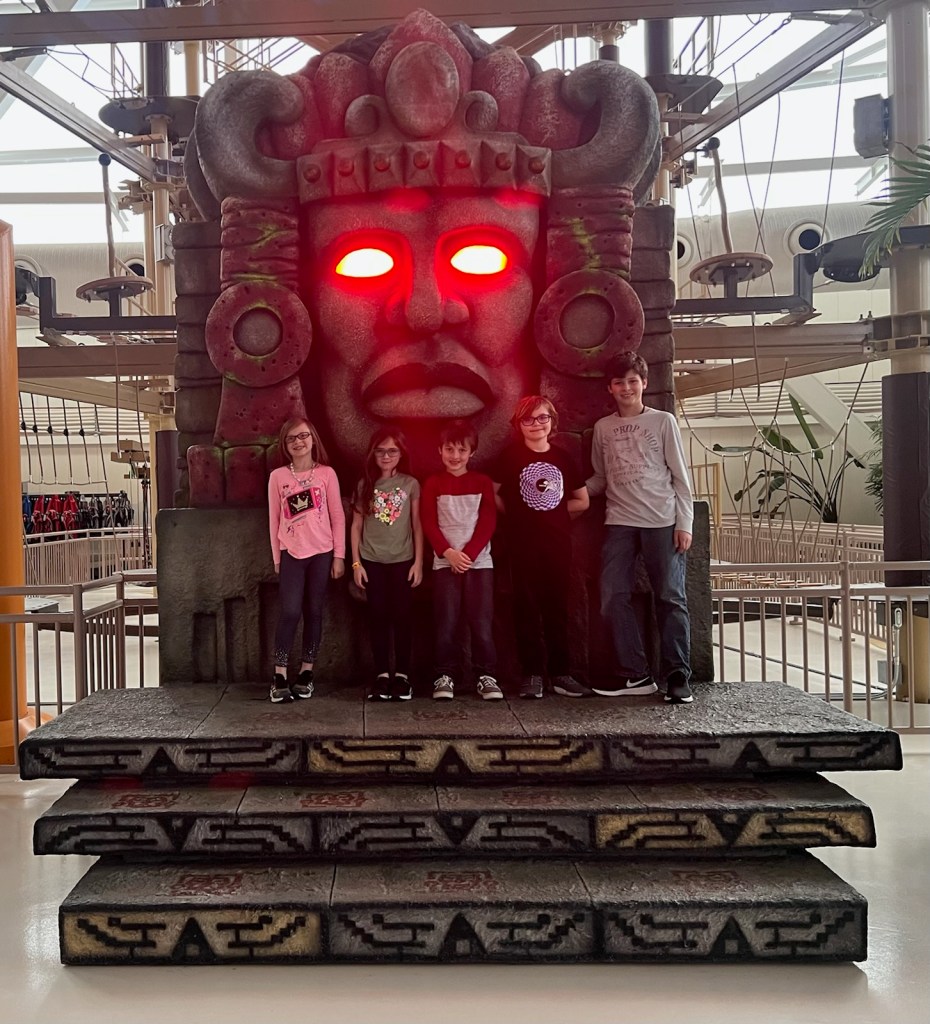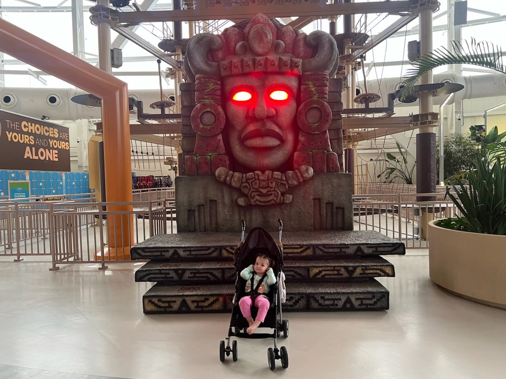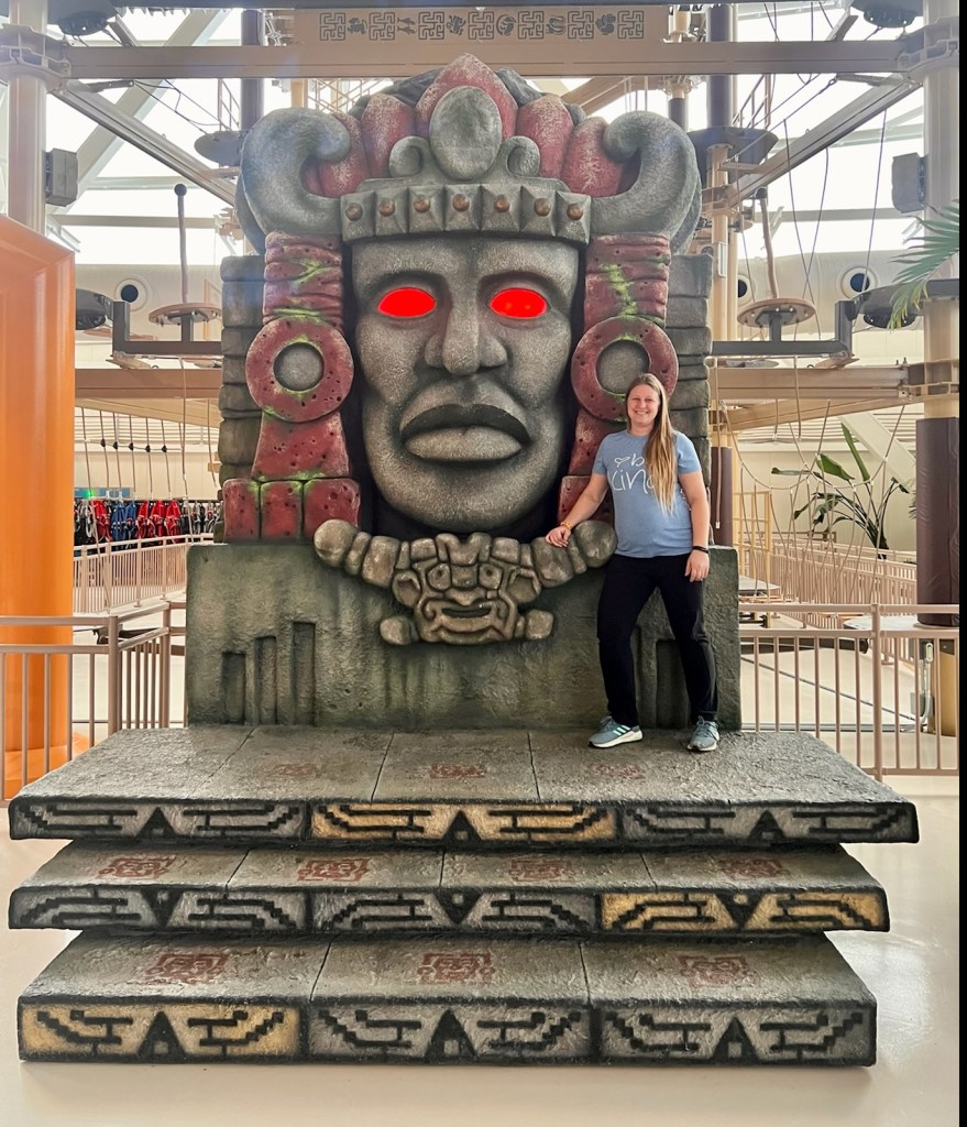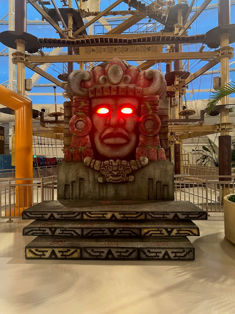 Next to Sandy’s Blasting Bronco is the Legend’s of the Hidden Temple ropes course. Unfortunately the ropes course was also shut down. Apparently it has been closed since COVID and never reopened. However Olmec and the steps of knowledge are there for pictures and this made me very happy. My inner 10 year old self came out.