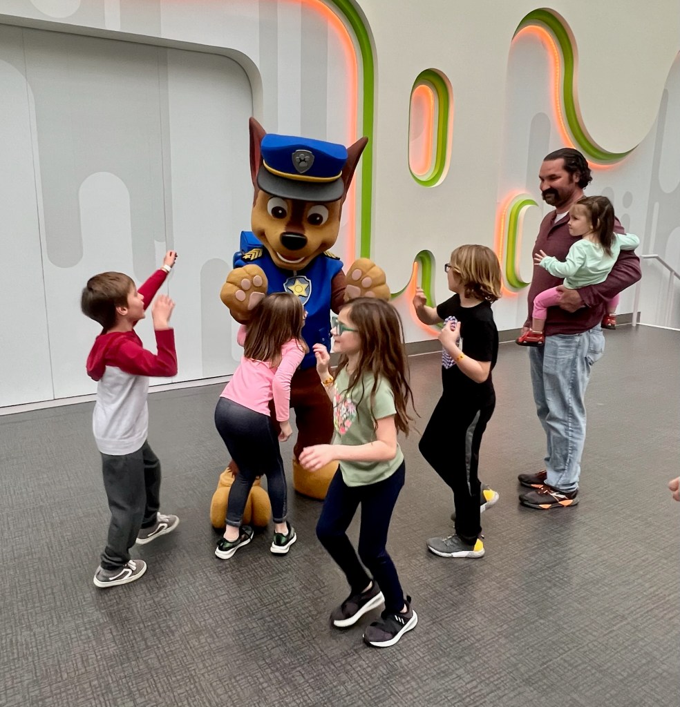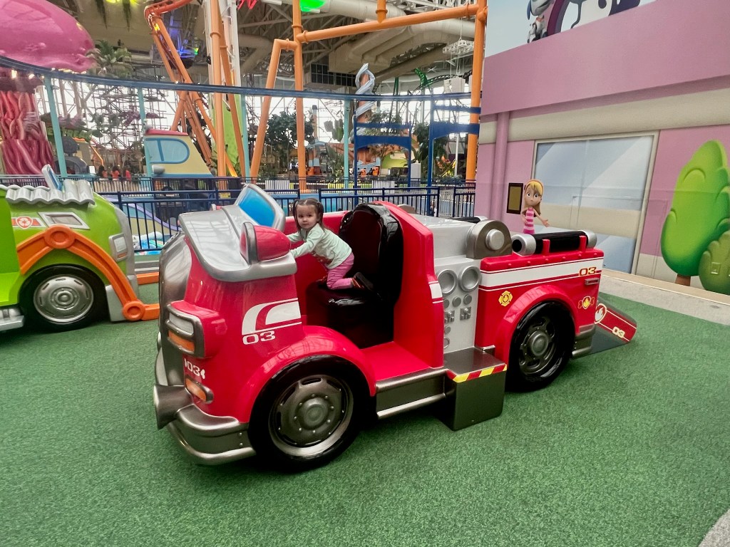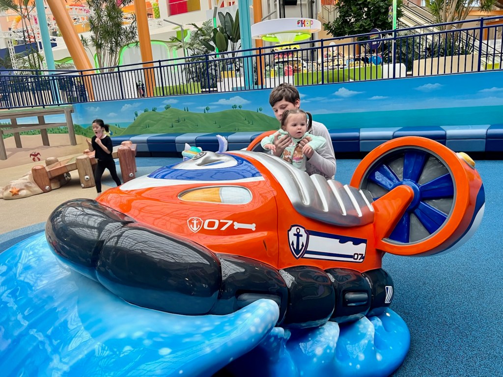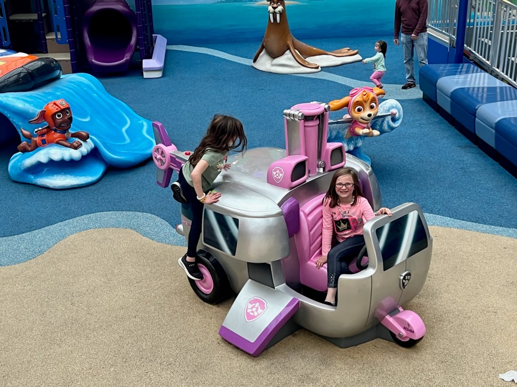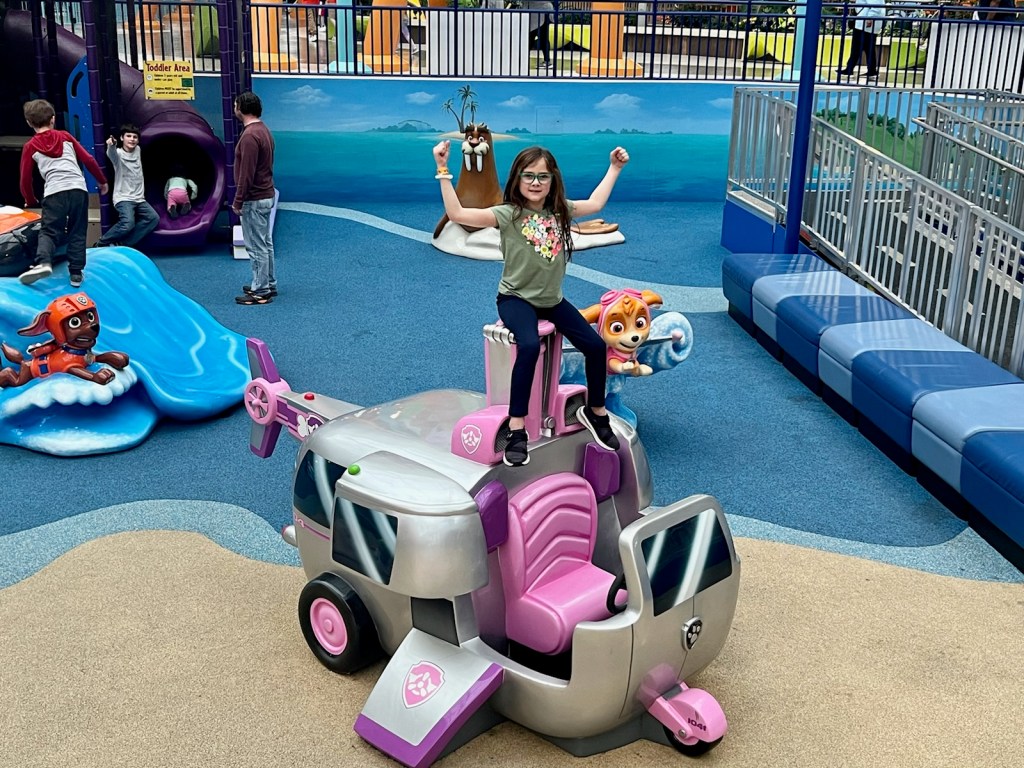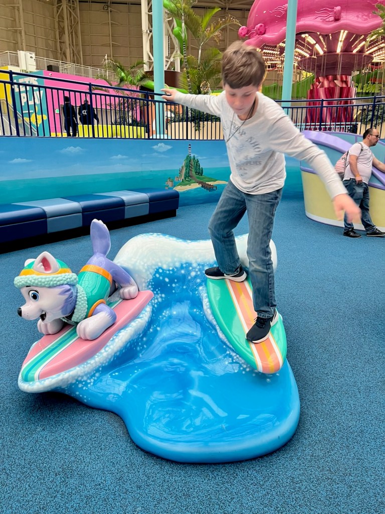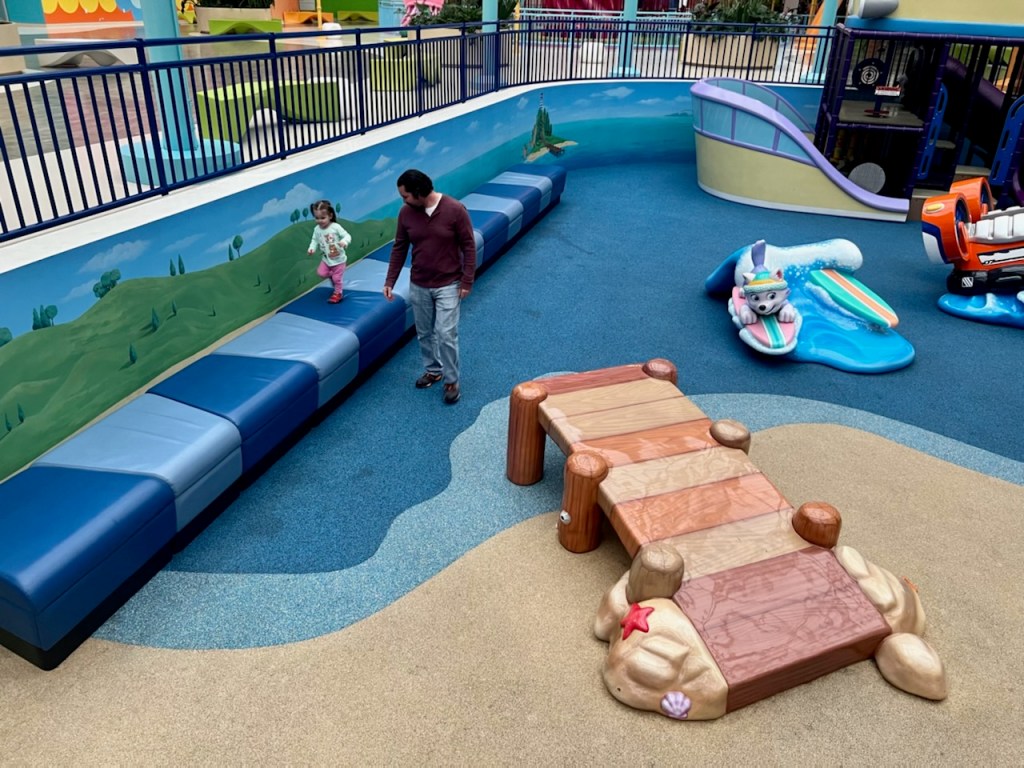 PAW Patrol Adventure Bay play area that is. The kids had so much fun playing on all of the cars, lookout tower and slides. The play area is huge. Austin took pictures with everything. He was so happy to play in Adventure Bay.