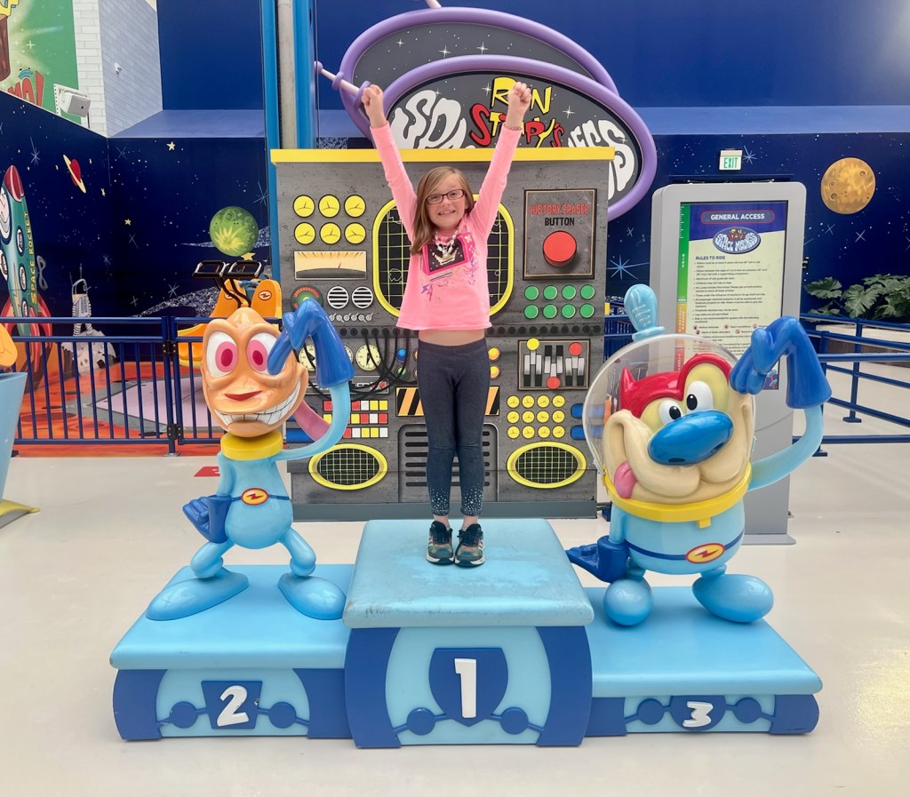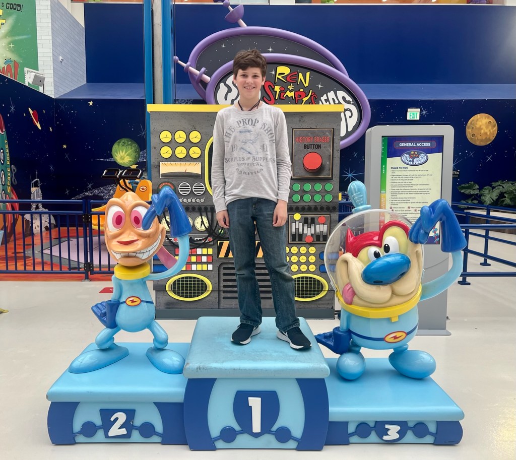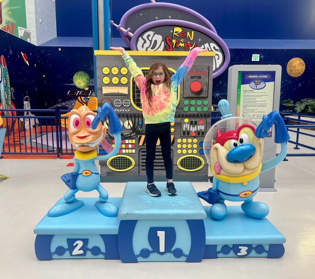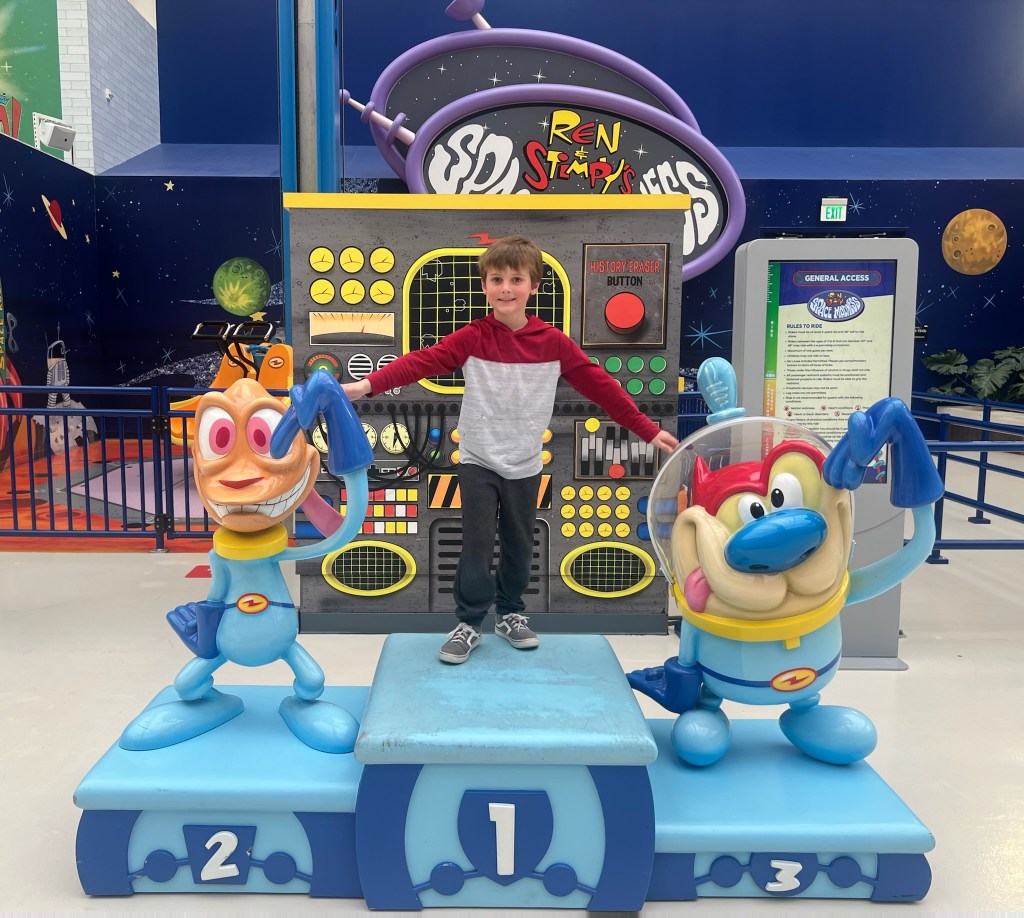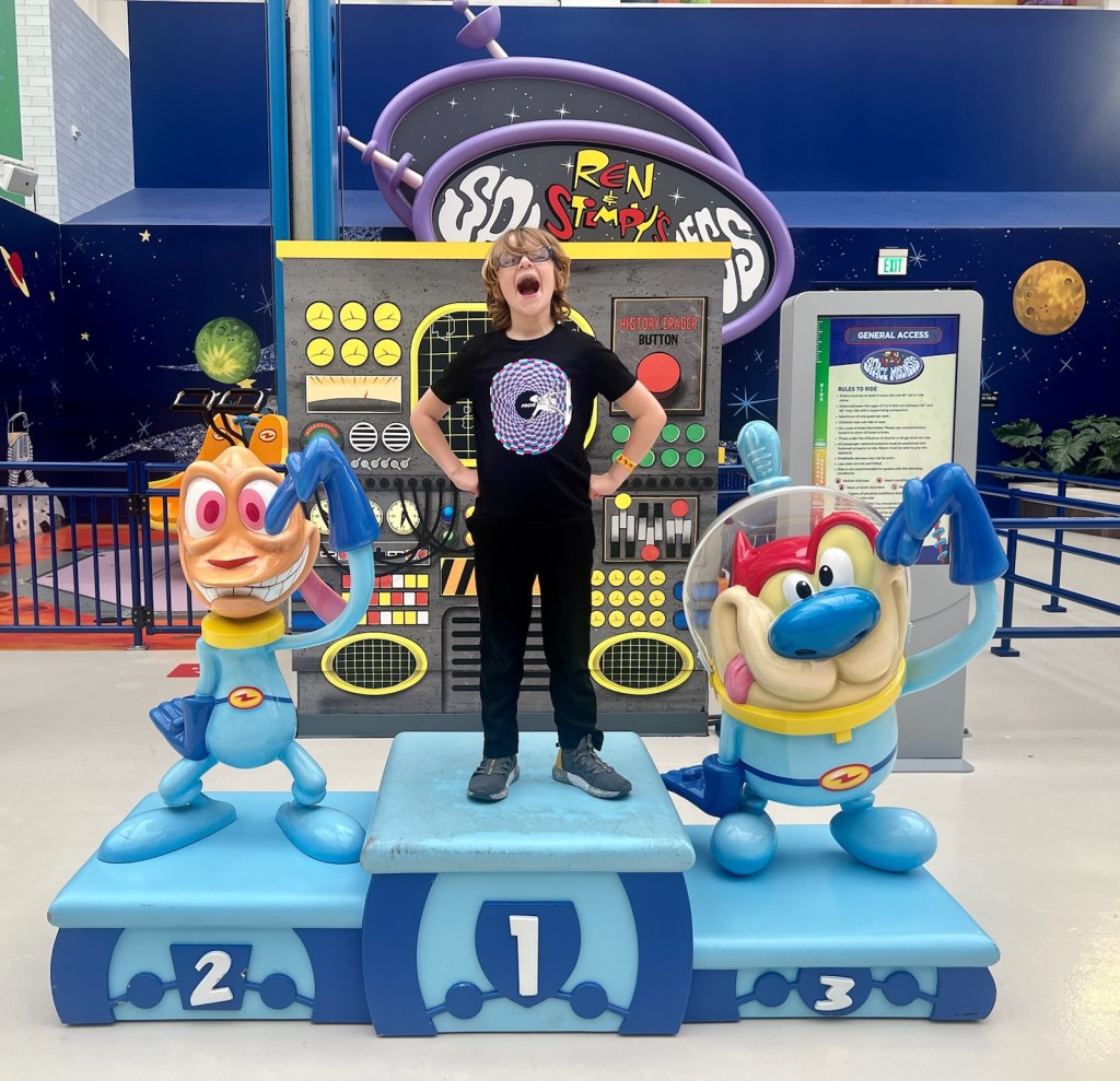 It was funny to see how many characters the kids didn’t know and how many Blake and I didn’t know that they knew. That being said, the next ride was Ren & Stimpy’s Space Madness. I got excited about the characters and the kids looked at me like I was weird. This ride was tons of fun. It make your stomach drop and was much more of a thrill than expected.