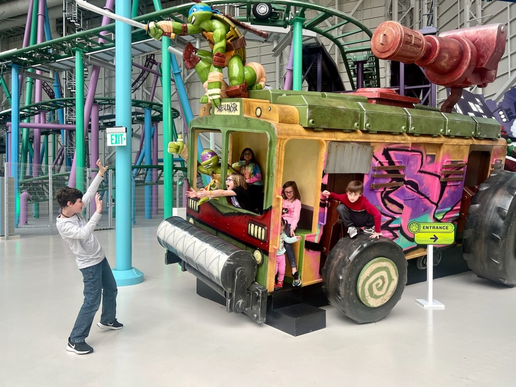 Next up on the list of thrill rides is Kraang Prime Pandemonium! This ride spins while going back and forth and upside down.