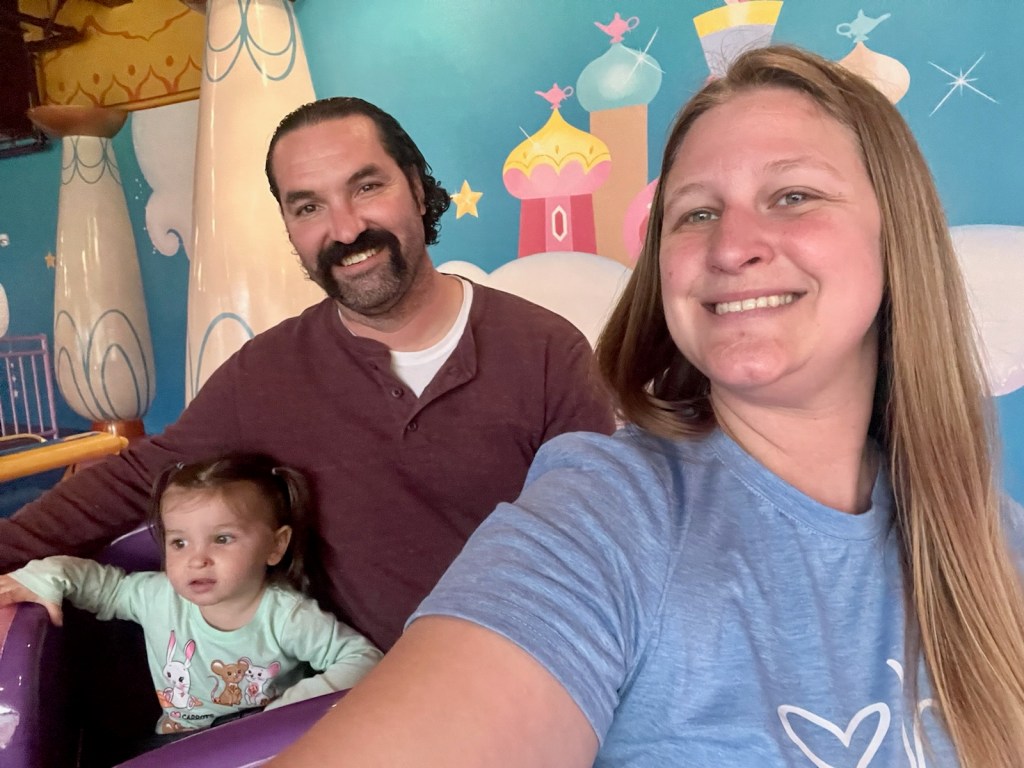 Thankfully the next kiddie ride Bikini Bottom Crosstown Express did not have a height requirement preventing Taylor from riding.