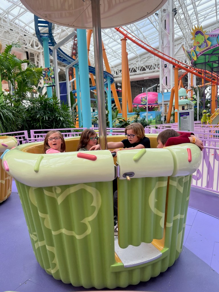 Butterbean’s Sweet Spin is next up on our kiddie ride adventure. Blake, Ethan, Taylor and I rode together and Blake really got the cupcake spinning. Taylor had the best expressions on her face the entire time.