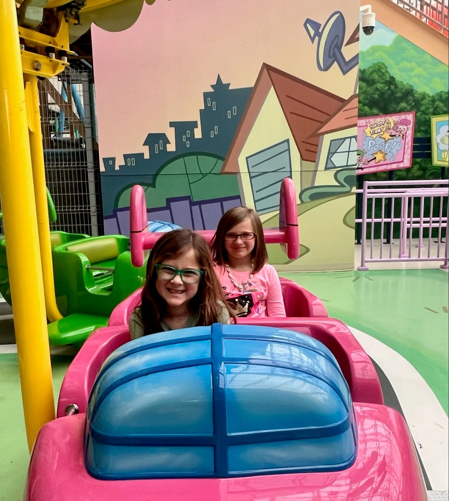 Nickelodeon Slime Streak is a twisting coaster that gives you the impression you are riding on slime.