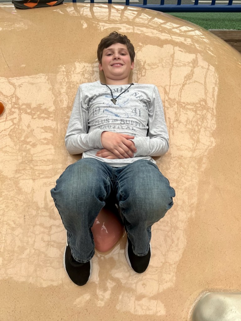 Blake and I took the elevator back down to the park and the kids took the escalator and got to the park before us and immediately played in the slime play area until we got there (1 minute later).