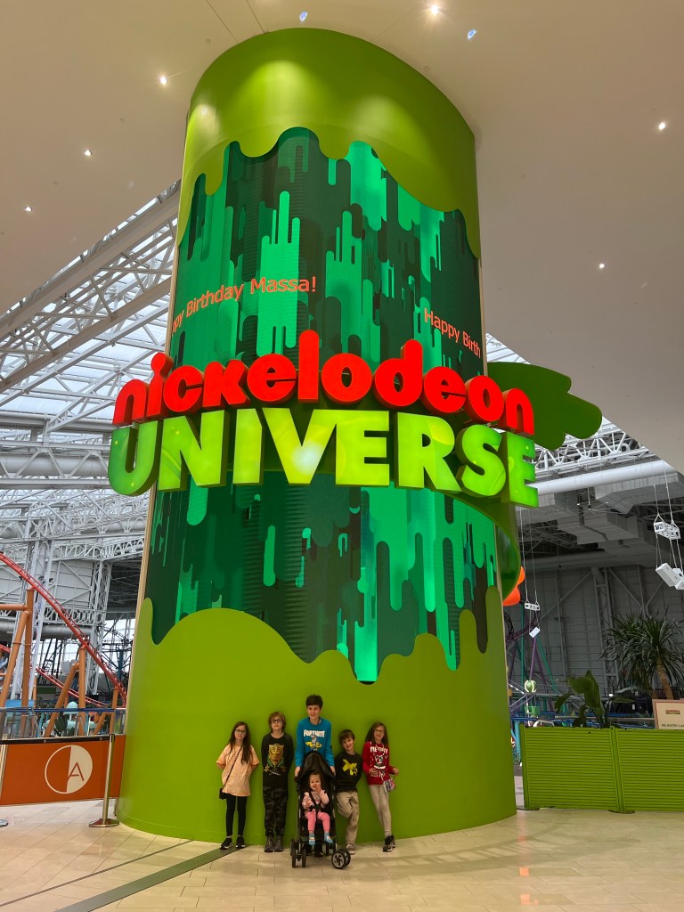 The kids wanted to take a picture in front of the Nickelodeon Universe son.