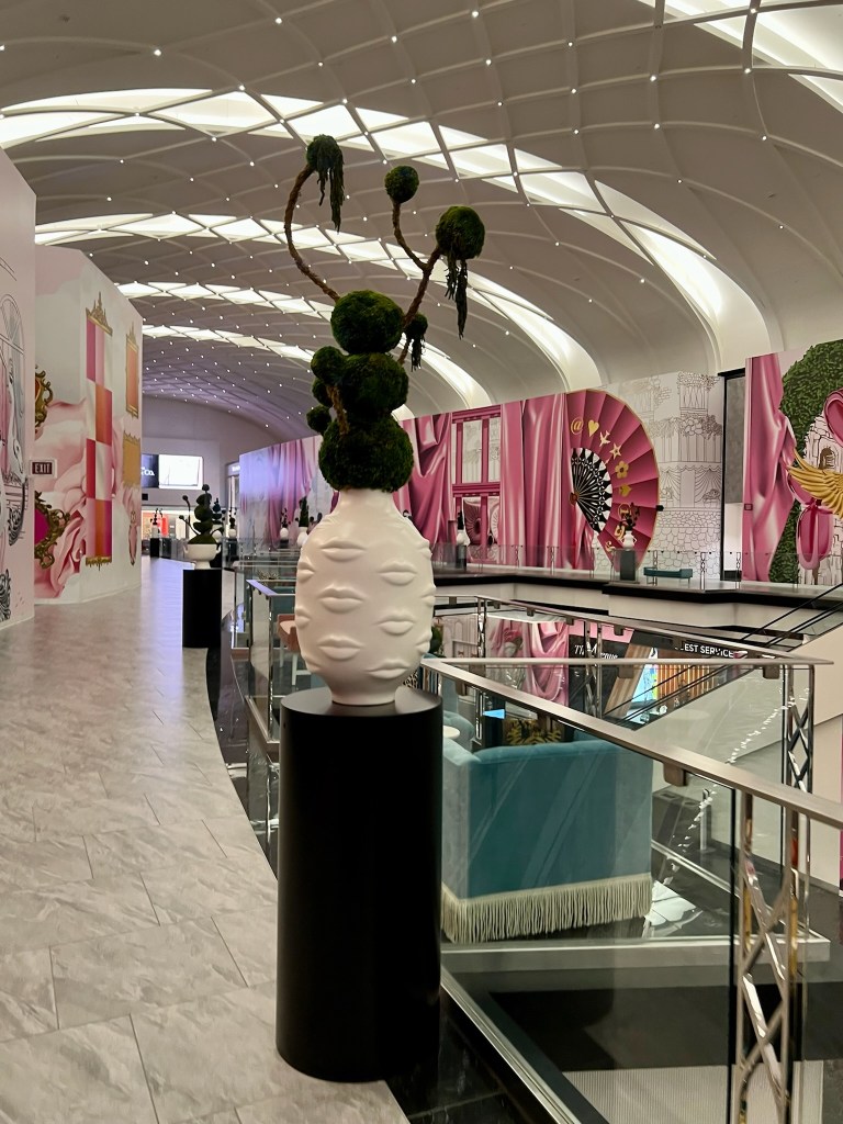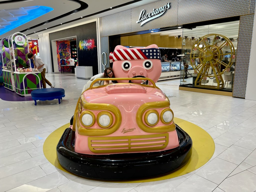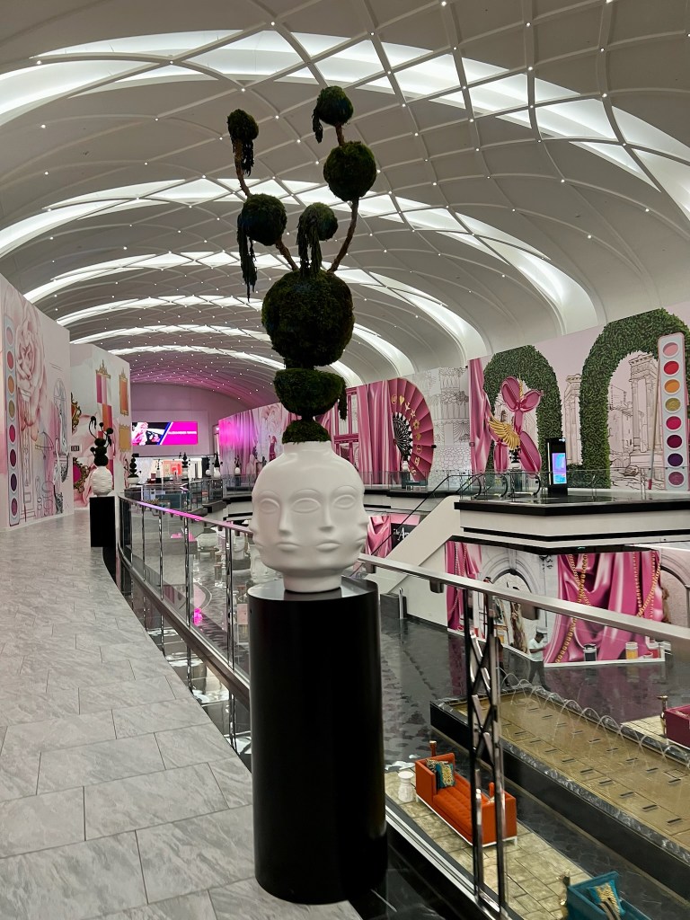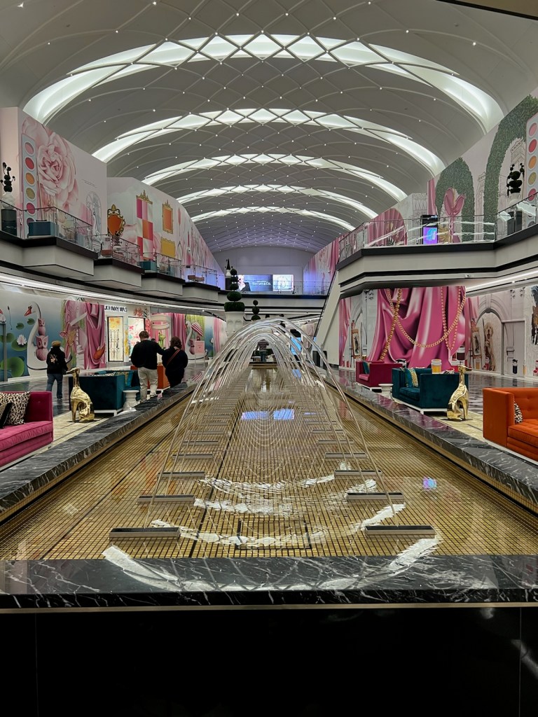 The last night of our time at the mall, we decided we wanted to try to see as much of the mall we could. Keeping in mind that there are many empty stores because the mall is only 3 years old. We made our way to “The Avenue”. The Avenue part of the mall is the luxury part of the mall with stores to include Saks Fifth Avenue, Tiffany & Co., Carpaccio, Gentle Monster, Dolce & Gabbana, Gucci, Louis Vuitton, etc. Even the bathrooms seemed more upscale. The kids were fascinated with the area and the murals on the walls and especially of the sculptures/vases.