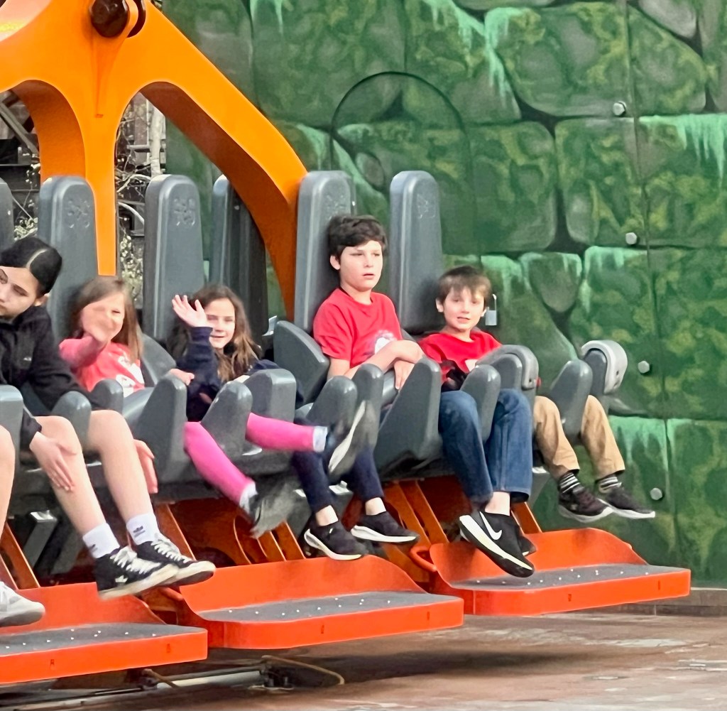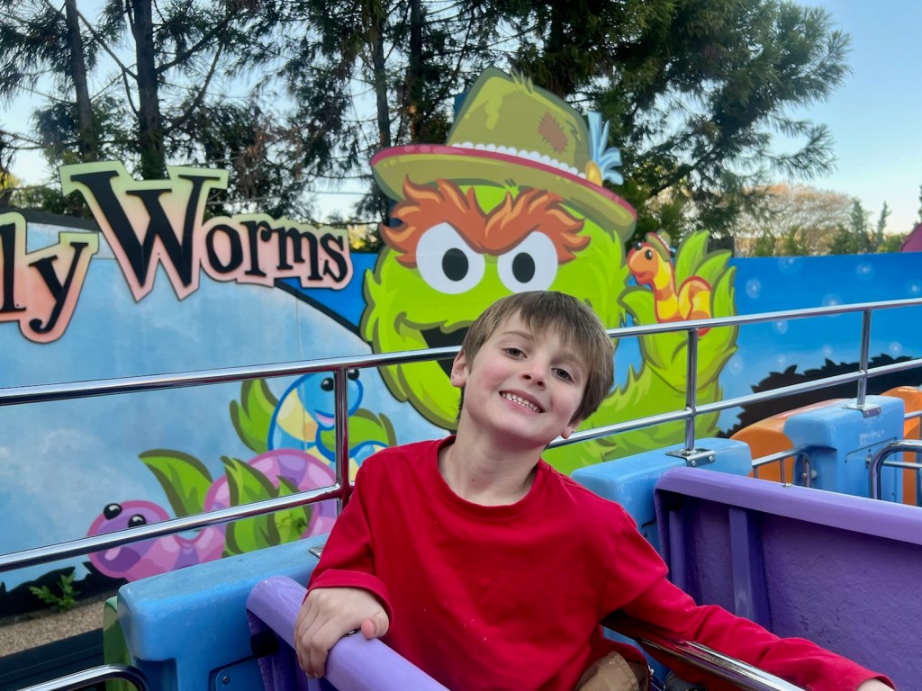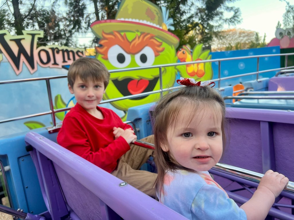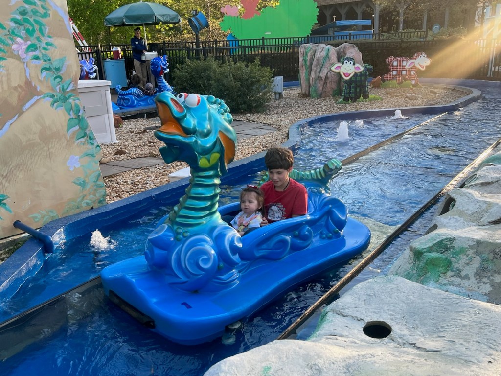 We kids got in line for Finnegan’s Flyer and were about to get on and the ride shut down. This would have been Austin’s first time riding it. The ride closed because 2 people got stuck on it.