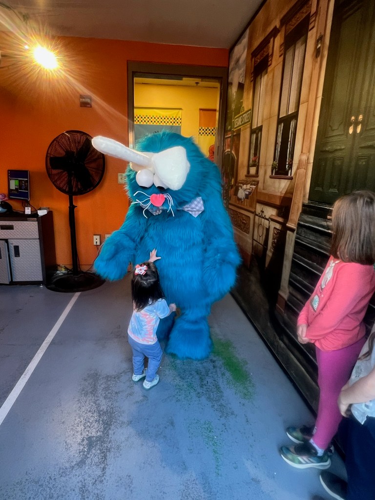 Disappointing but oh well, we enjoyed seeing Oscar. As we were walking away, the employee told us that in 15 minutes, Cookie Bunny would be showing up. The kids rode a couple of rides until it was time to see Cookie Bunny!