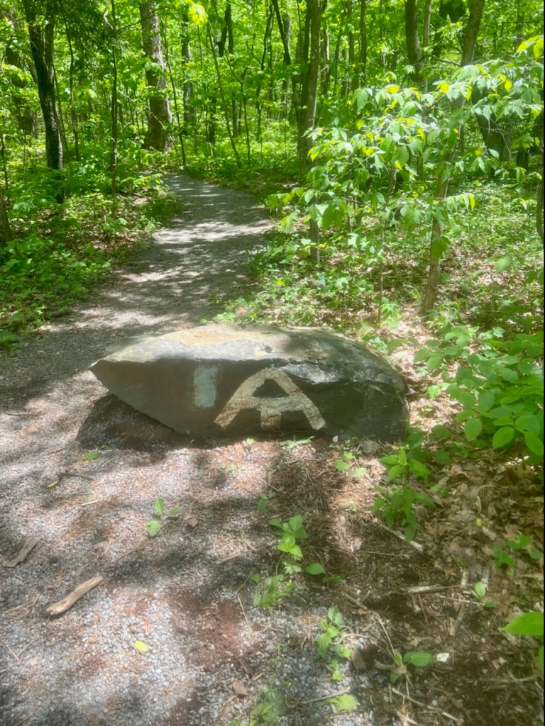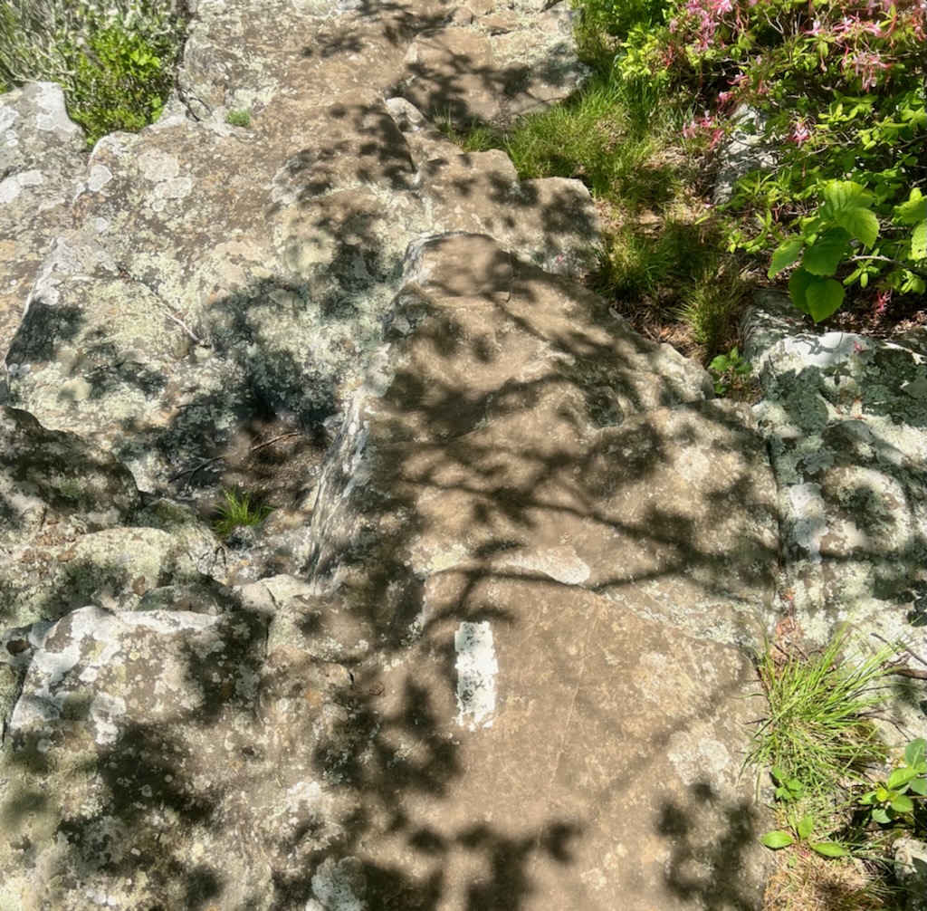 We began our hike towards the back of Humpback Rocks Picnic area. There is a rock at the beginning of the trail indicating that is the correct trail to the AT. Approximately 0.3 miles in length.