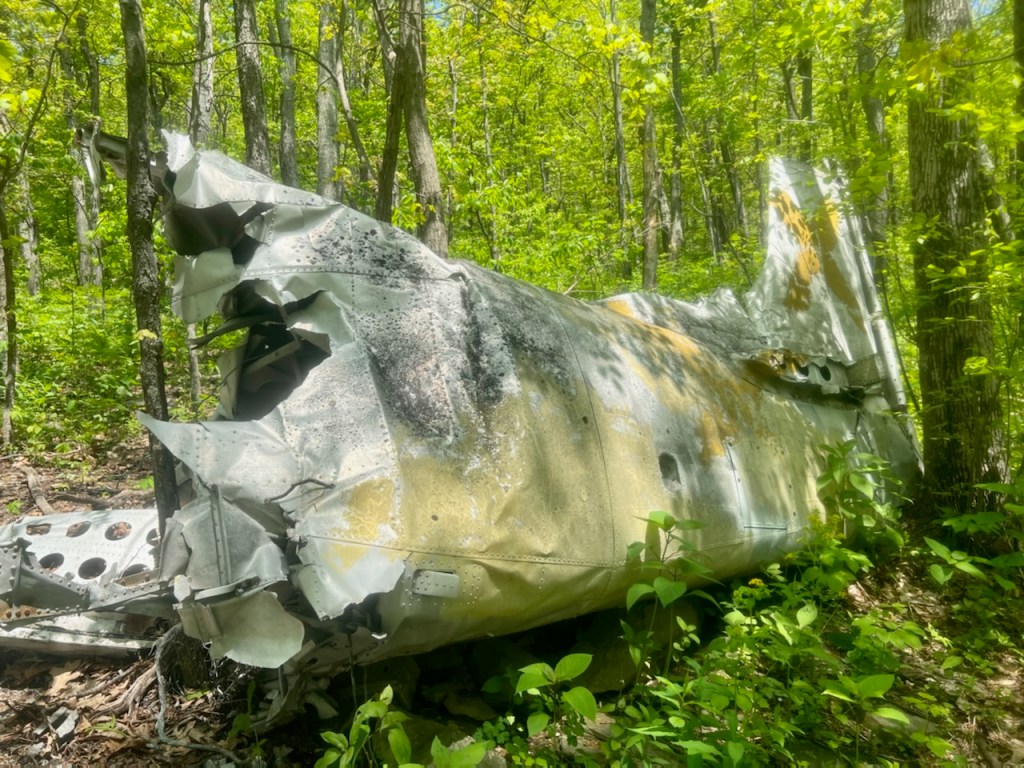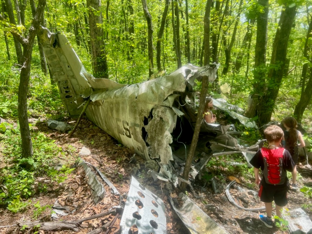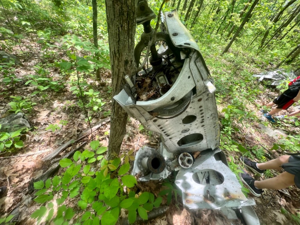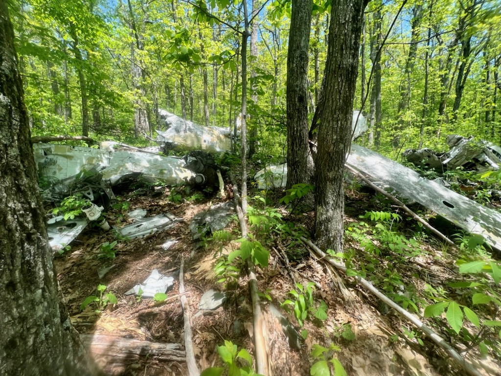 About 1/2 mile from Battery Cliffs is the location of the plane crash. The plane crash is located a couple hundred yards from the trail and from the trail, hikers are not able to see the plane especially during the spring and summer.