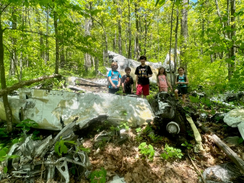 In April 2021, Blake and I set off to find the remnants of a plane crash from the 1960s. We found an article from the 1990s that gave approximate coordinates some landmarks to look out for. The article also stated the plane could be really hard to find and it is best to go with someone who has been before. We went ahead and gave it a go and we found the plane. When we went, it was fairly easy to see the plan due to no undergrowth. We wanted to take the kids to see it as we felt they would really enjoy exploring and learning the history of the crash.