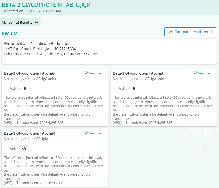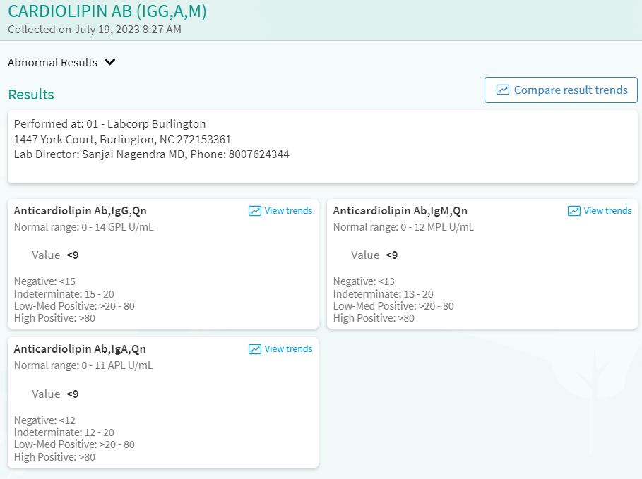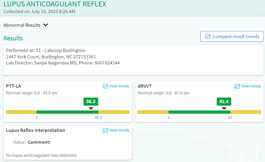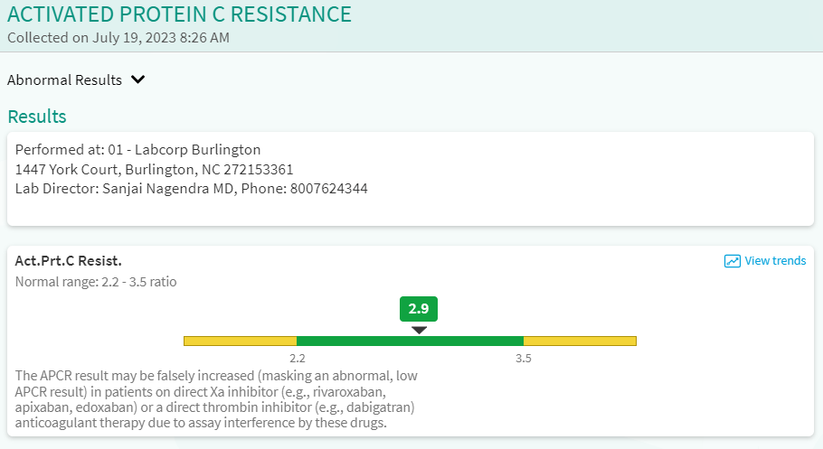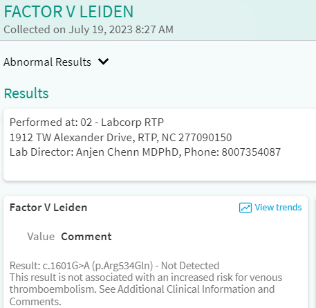 I saw Dr. DeRidder with Riverside Hematology/Oncology 7/19/2023. During the appointment, I had 12 vials of blood drawn to check for multiple Hypercoagulable conditions.