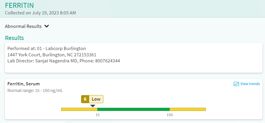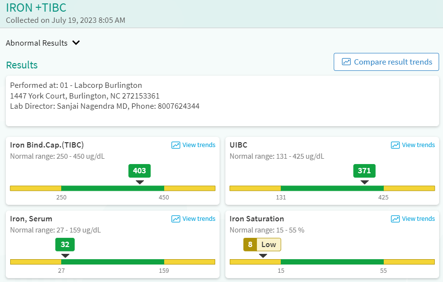 My iron levels were the first results to come back. I do have an iron deficiency and was advised to begin taking an iron supplement.