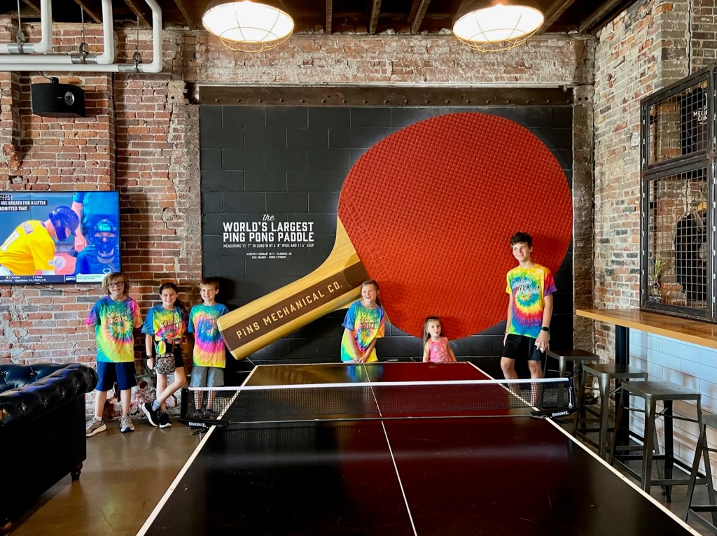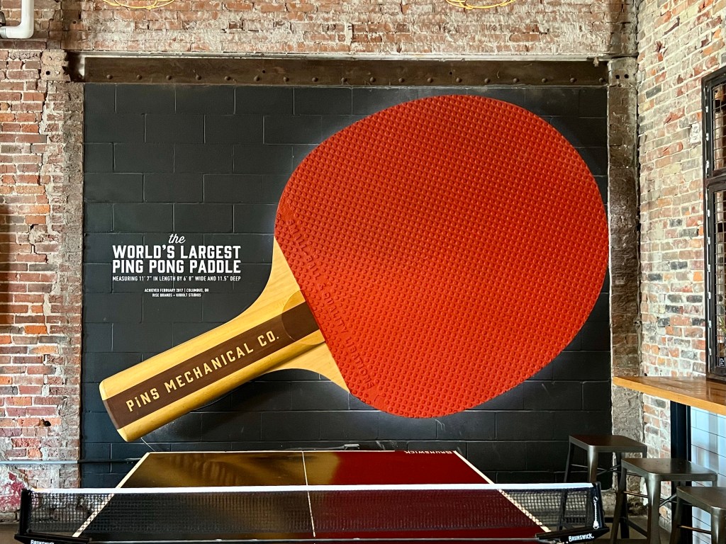 The world’s largest ping pong paddle is located inside Pins Mechanical in Columbus, OH.