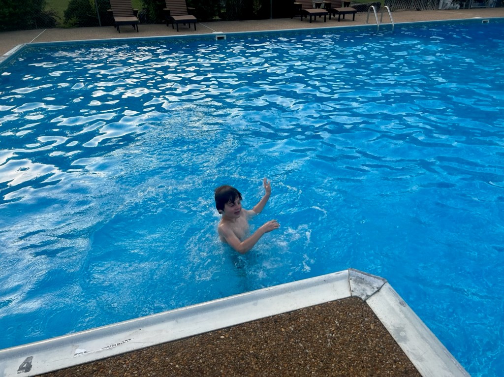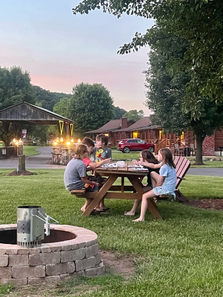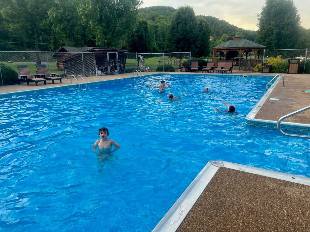 We got back to the cabin and the kids wanted to play in the pool. We told them that was fine and we cooked while they swam. The had a blast in the pool.
