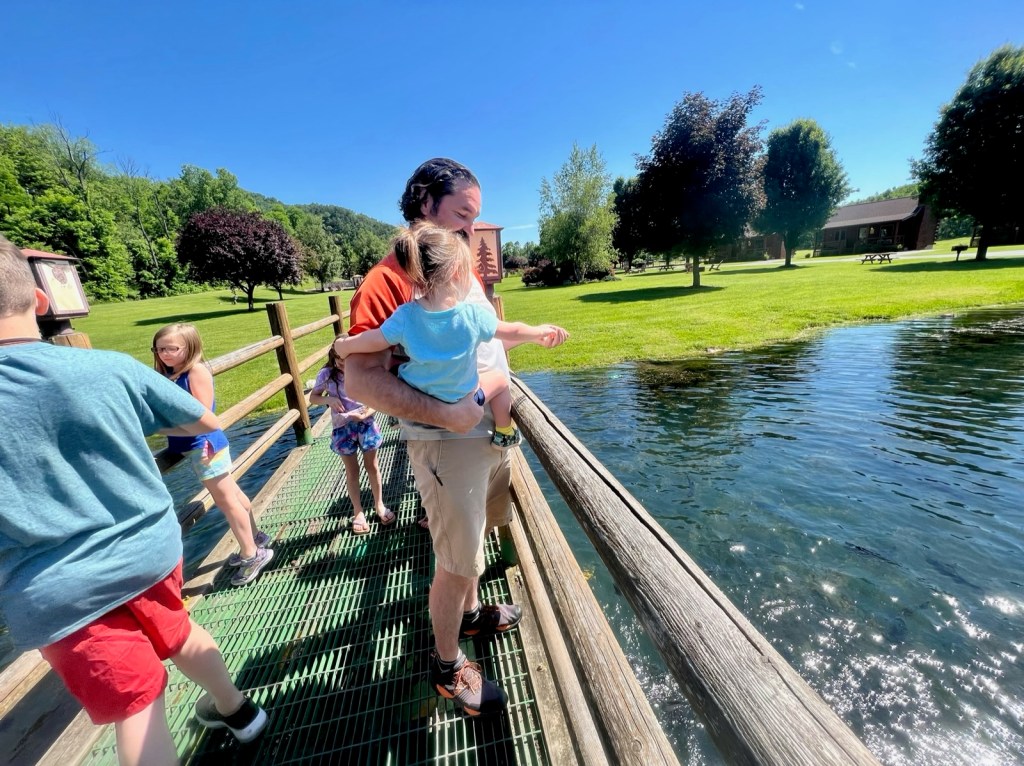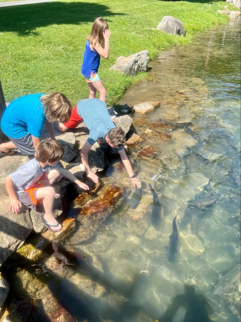 While we packed the kids went to town playing and exploring more of the campground. Once we finished we joined them and gave them some money to feed the fish and ducks.