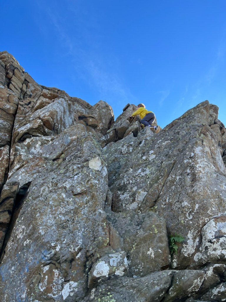 A few minutes later we see a head coming up from the rocks in front of us. We look down and it is Ethan. He had climbed the rocks from the lower platform. We initially got on him for doing it and telling him how dangerous it is. Nick was behind him and we told him to not even think about trying to climb the rocks.