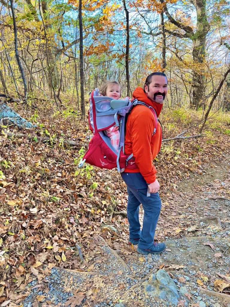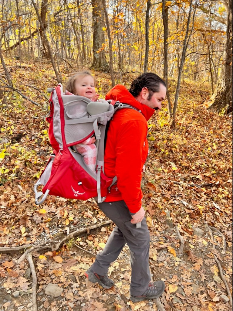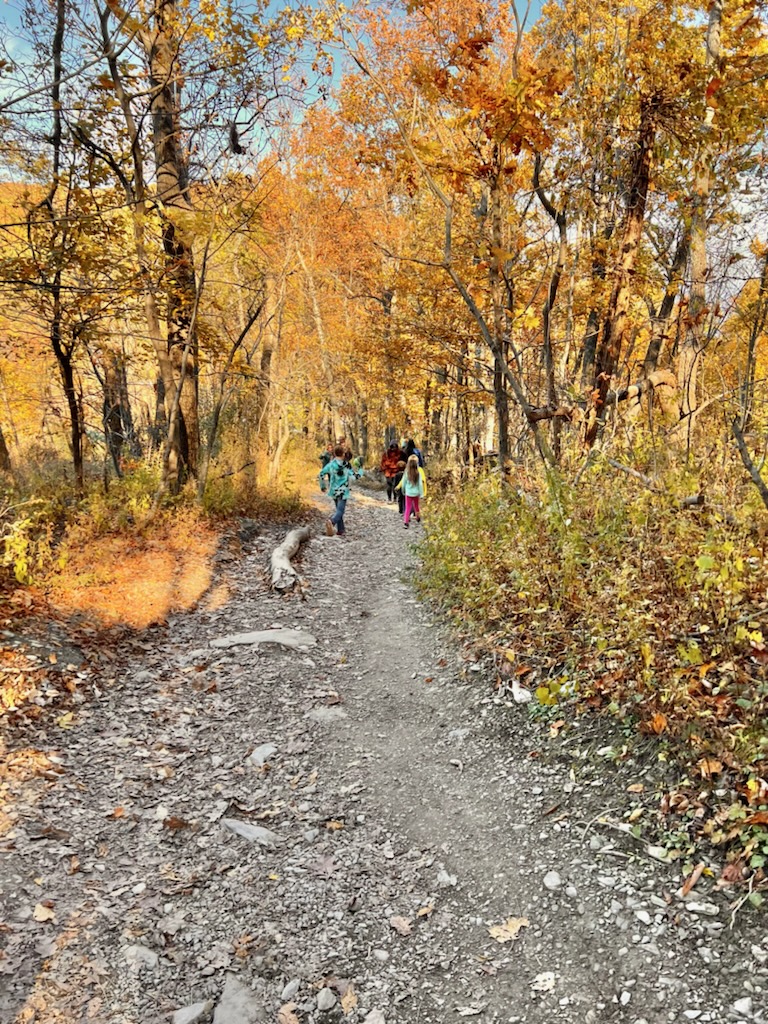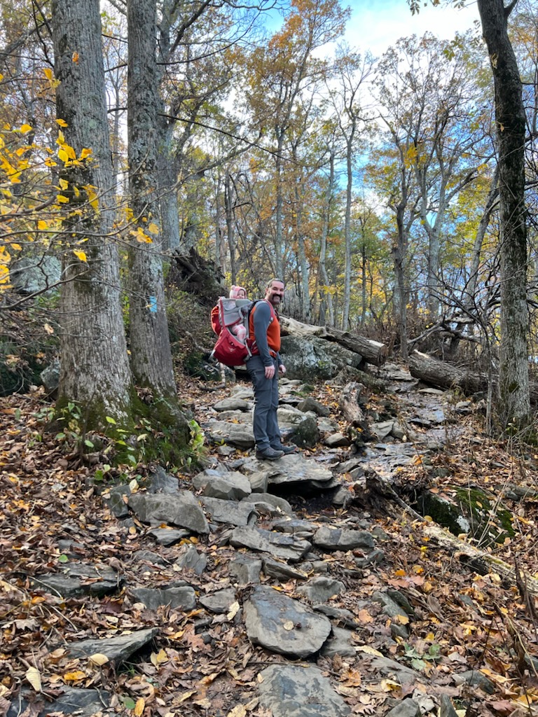 Blake got home from work and we had our traditional Sunday pancake breakfast. After breakfast Blake and I cleaned up while the kids played. We talked about wanting to take the kids on a short hike to see the fall colors, this time of the year the foliage should be around peak. We decided on Humpback Rocks. Humpback rocks is a shorter hike with a lot of elevation gain and amazing views. We tell the kids and they get their packs together and we get in the car and head towards Humpback rocks.