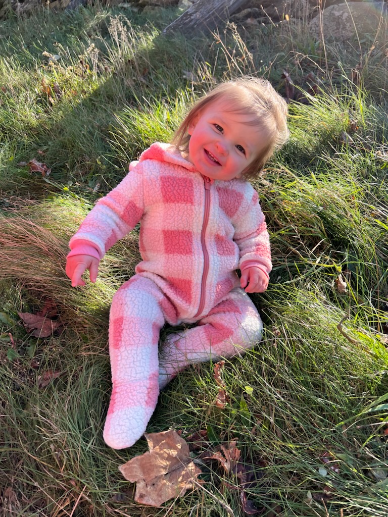 We get back to the car and the kids had a snack and Taylor played on the hill next to the car.