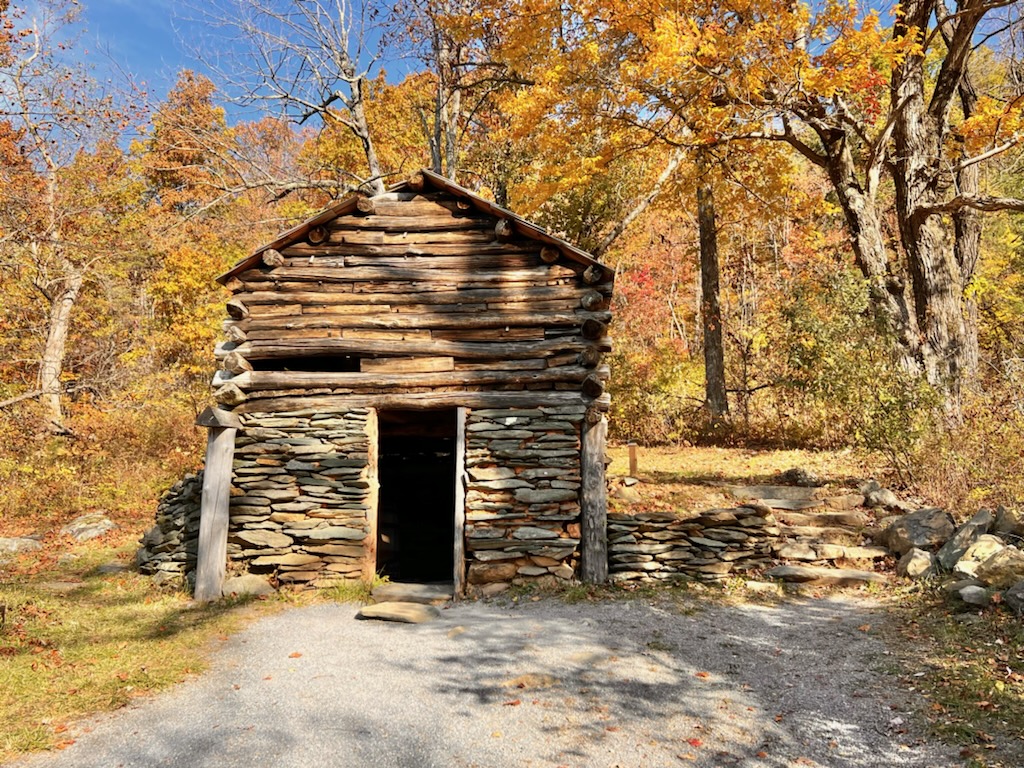 Across the street from the parking lot is the Mountain Farm Trail which leads to the Humpback Rocks Visitor Center (unfortunately it is closed due to COVID). The Mountain Farm Trail is an informational trail that has buildings and signage talking about Appalachian mountain life in the 1890s.